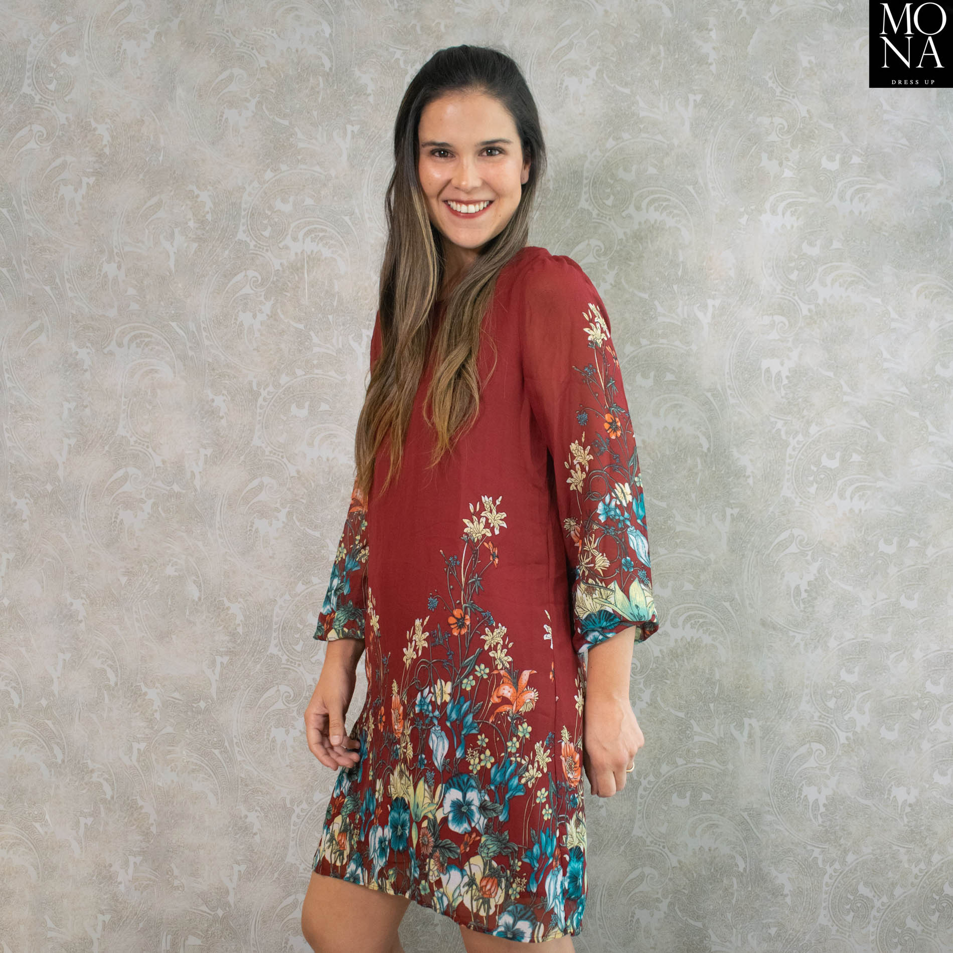 Si estás buscando ese vestido cómodo pero con onda que puedes usar mil veces sin aburrirte, Clarisa es para ti. Tiene ese corte recto suelto que no marca nada, pero igual se ve armado, y el detalle floral en tonos vivos lo hace especial sin ser demasiado. Un fondo burdeo que combina con todo y mangas 3/4 que salvan para media estación. Es uno de esos vestidos que vas a sacar del clóset cuando no sabes qué ponerte y siempre queda bien.