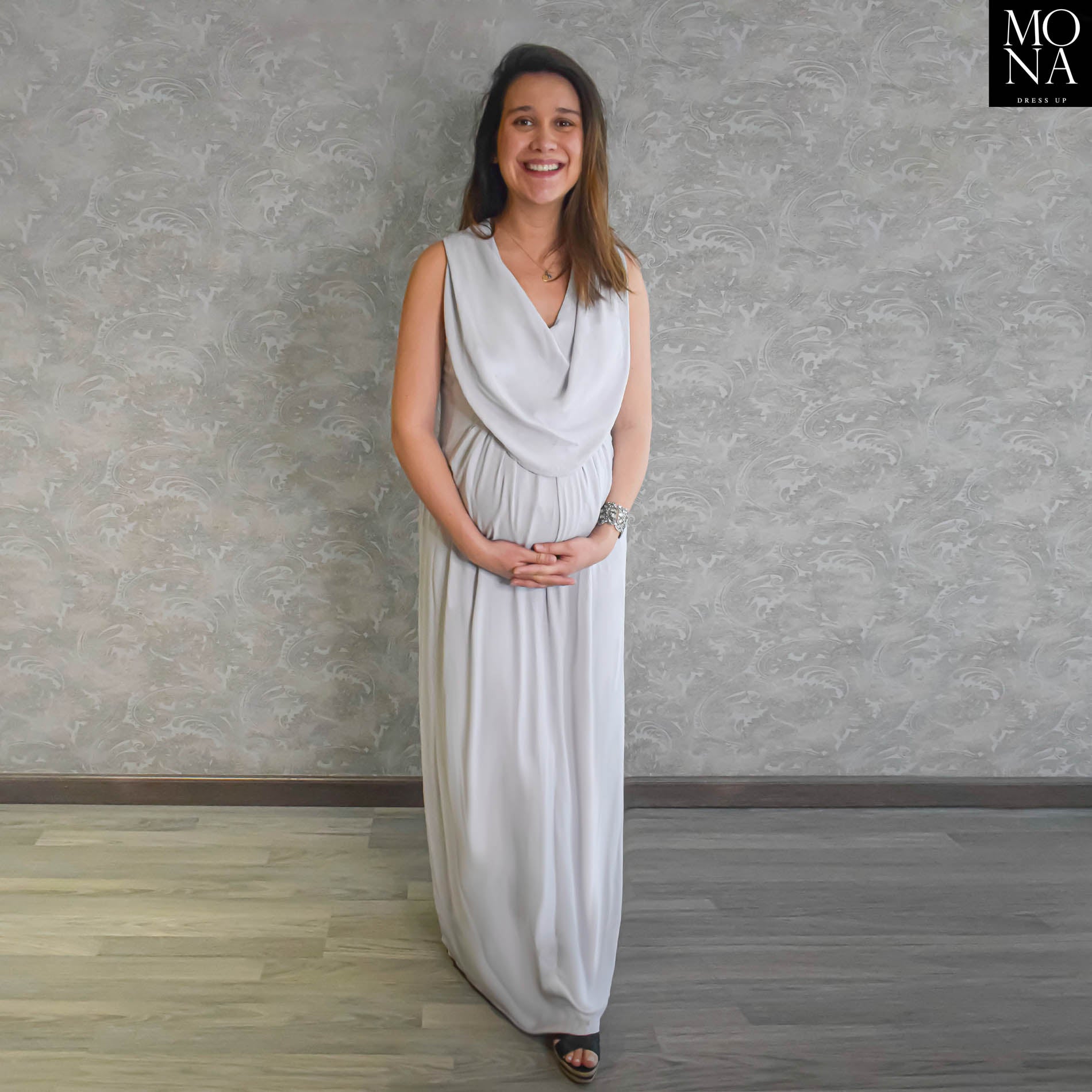 VESTIDO LARGO GRETA GRIS PERLA