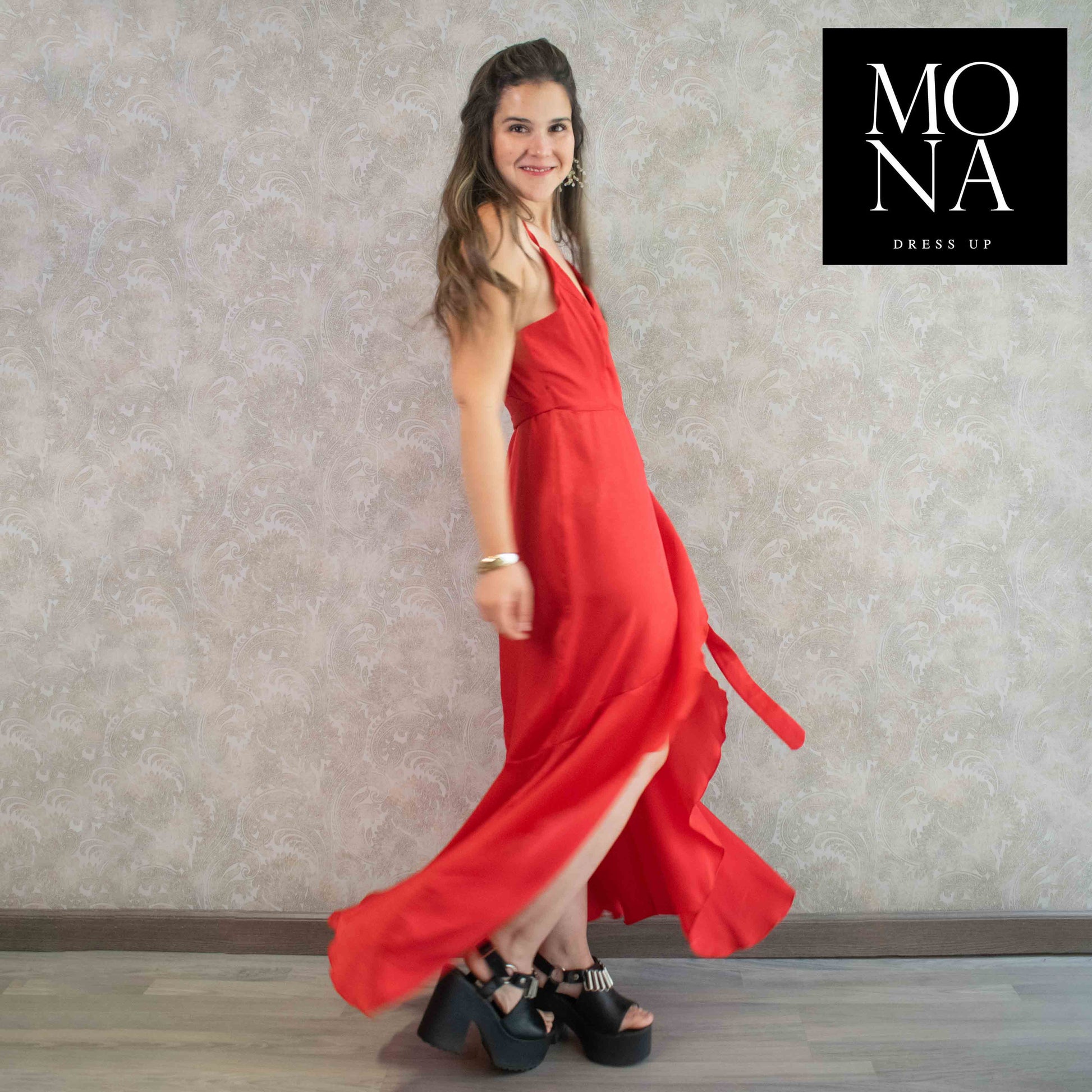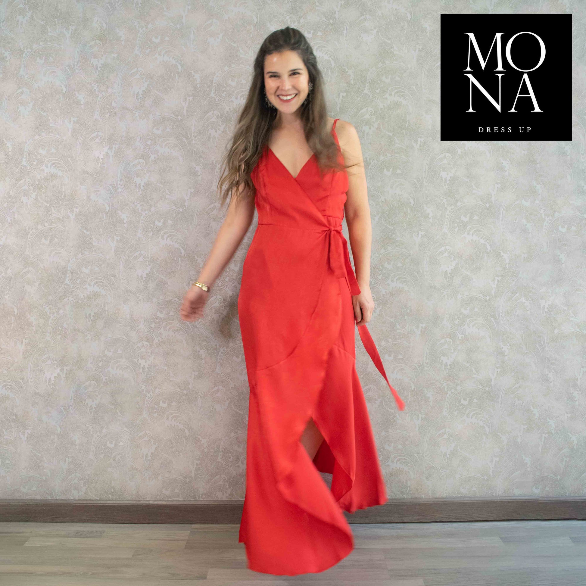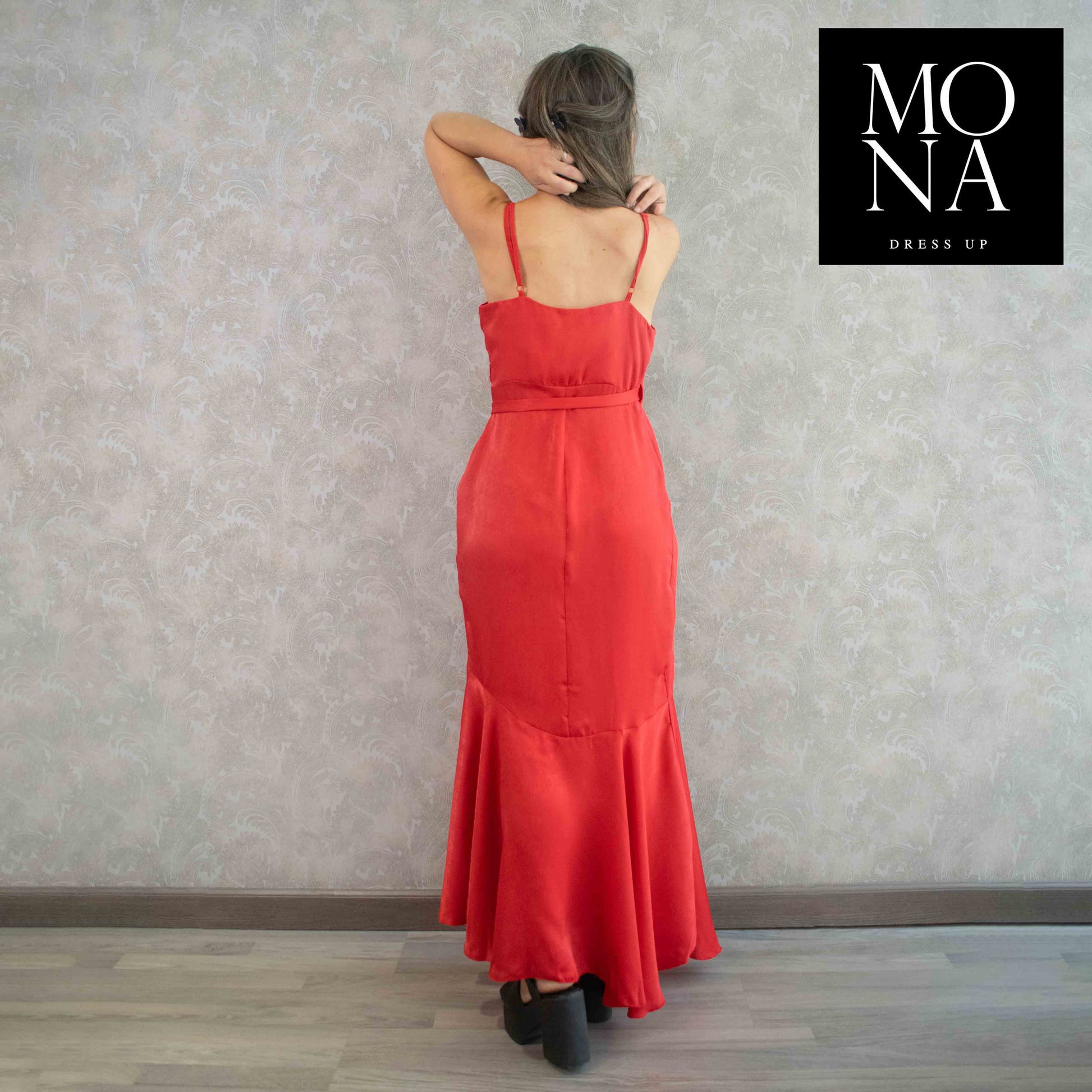 Hermoso vestido , tela soñada con una caída hermosa , lejos lo que más me gustó es que es largo ideal para las que somos alta y nos cuesta encontrar vestidos que tapen los pies . El escote y la espalda al descubierto acentúan las curvas , lo elegiria una y mil veces . Gracias mona dress up eres seca 👏👏👏