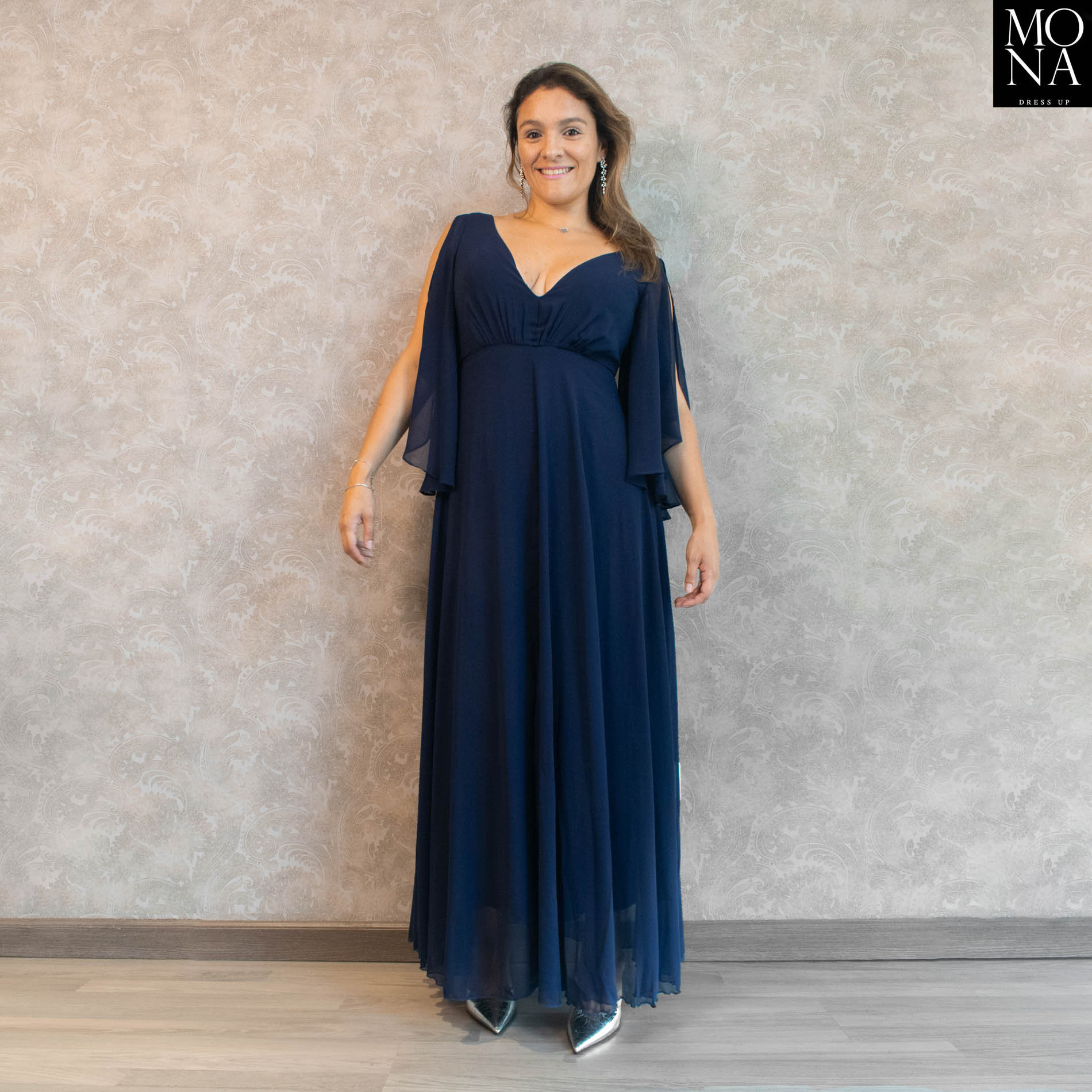 El Diana es de esos vestidos que te hacen sentir liviana, cómoda y súper linda al mismo tiempo. Tiene escote en V, corte bajo el busto y mangas tipo capa que le dan ese movimiento suave que siempre se agradece. Pero lo que más llama la atención es cómo se abre en la parte superior de las mangas, dejando un pequeño tajo sutil que muestra apenas un poquito de piel y le da un toque muy especial.
