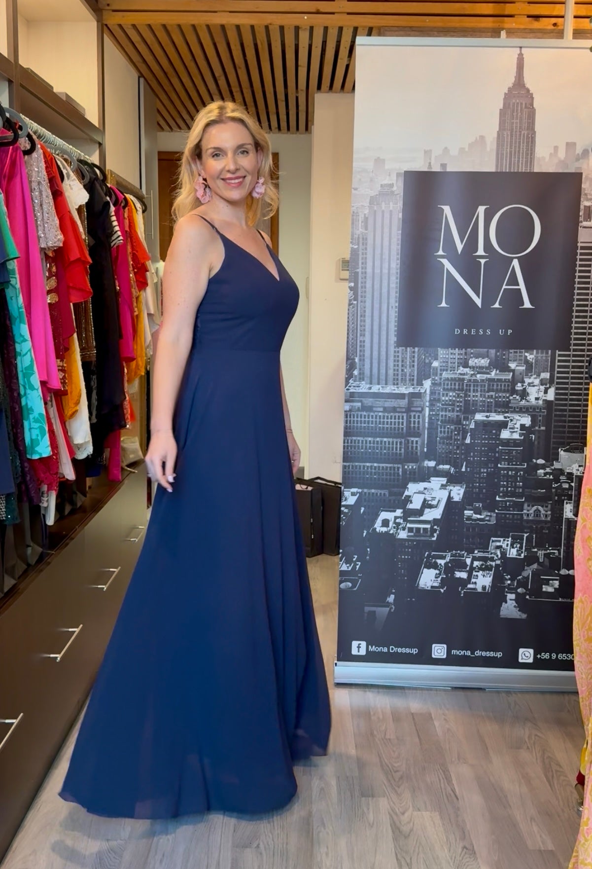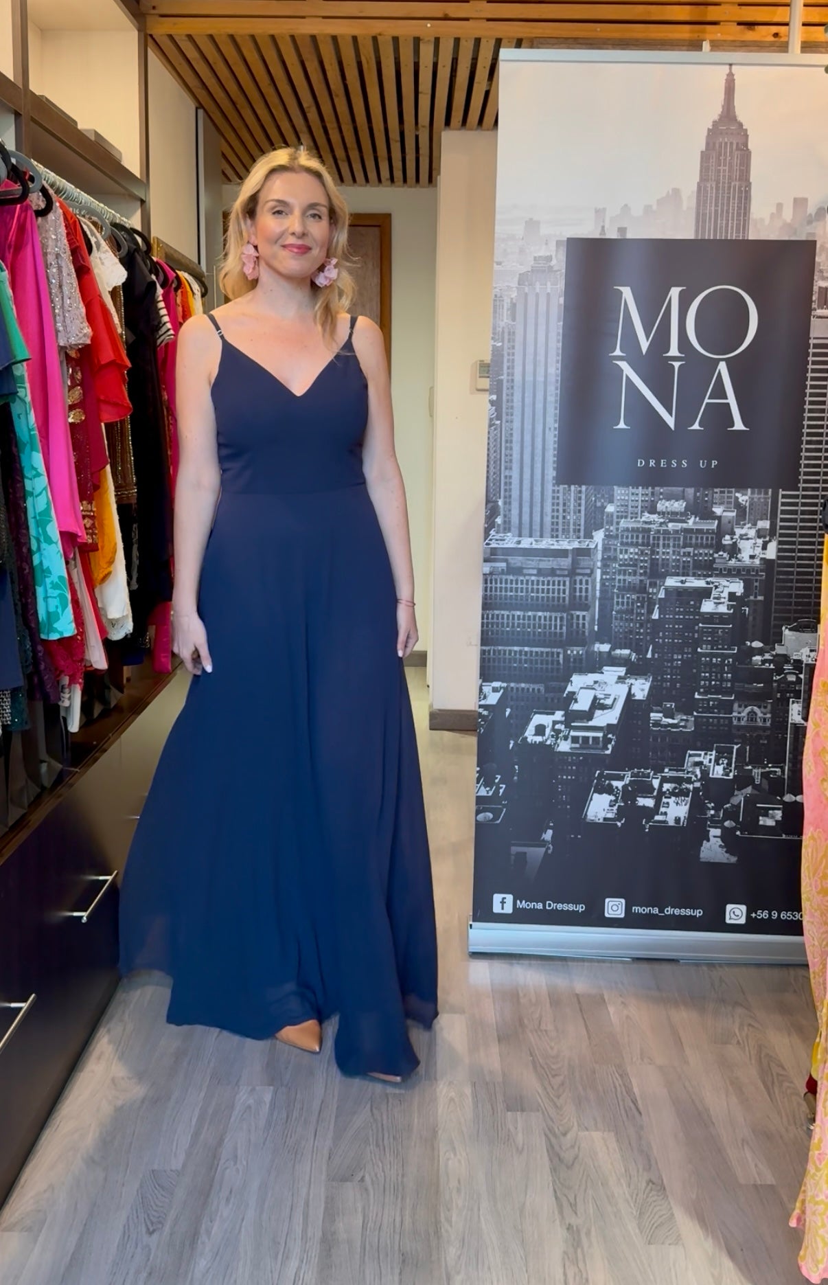 Si estás buscando un vestido sentador, elegante y sin complicarte demasiado, el Vera es ese modelo que siempre salva. Tiene un escote en V que alarga visualmente el cuello, una espalda semi descubierta con encaje y una caída liviana que se mueve contigo sin marcar nada. El tono azul marino es un clásico que funciona para mil ocasiones, y lo mejor: es cómodo de verdad.